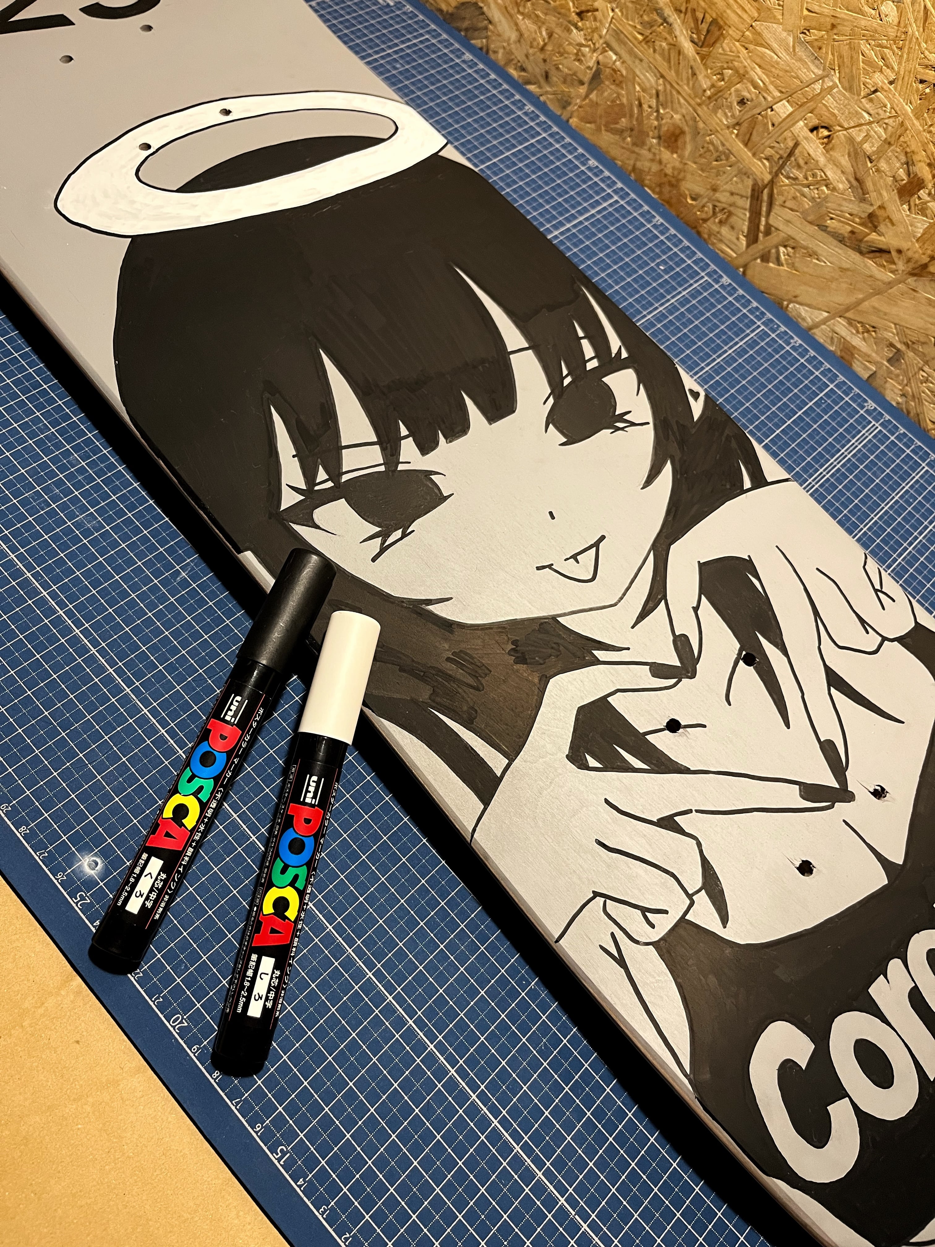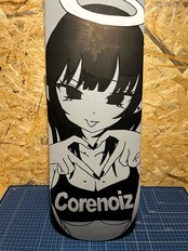 この作品は、スケートボードデッキをキャンバスとして使い、グラフィティを描いたアート作品です。デッキを使用につれ傷や汚れが増えていく存在として定義し、キャンバスとして使用。